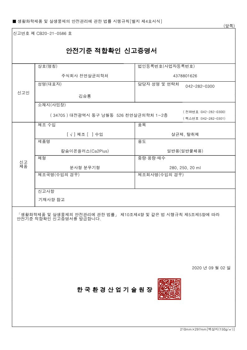 [안전기준적합확인신고증명서]칼슘이온플러스... Info. 글쓴이 가봄디자인실 Date 21-07-20 09:54 조회173 댓글0 Link 이전 다음 목록 Content [안전기준적합확인신고증명서]칼슘이온플러스(Ca2Plus) 이전 다음 목록