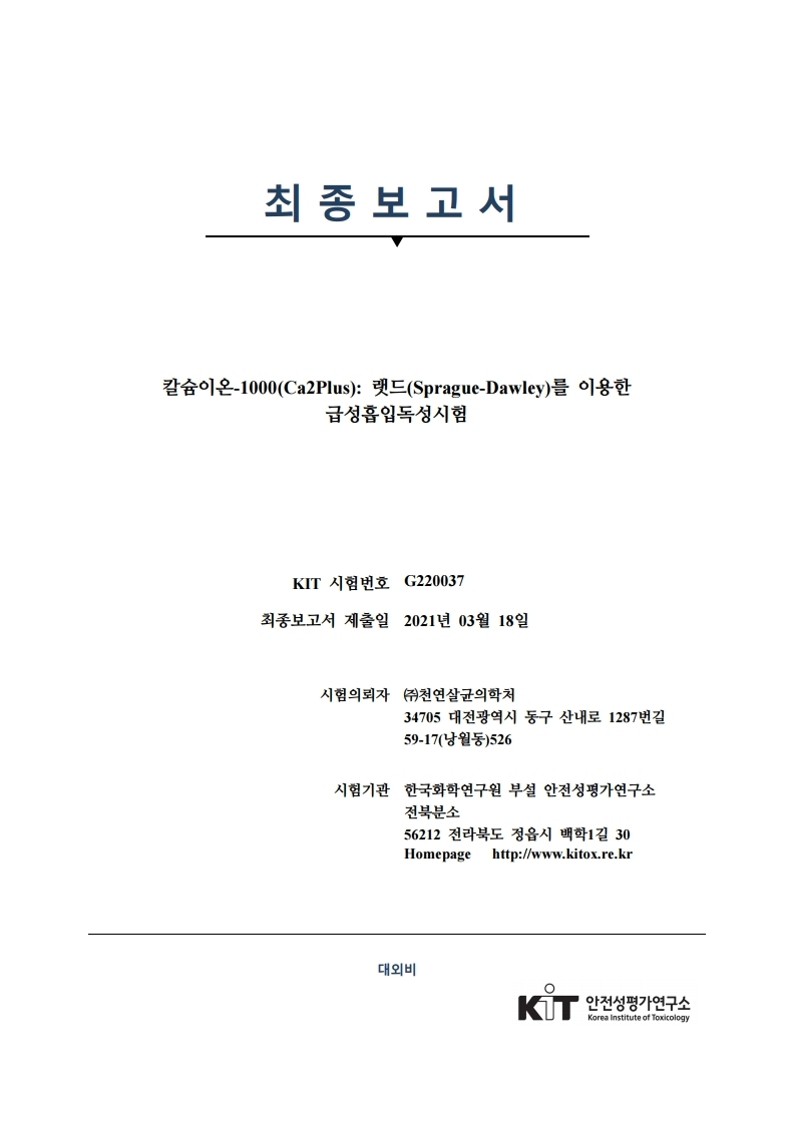 [급성흡입독성시험 최종보고서] Info. 글쓴이 가봄디자인실 Date 21-07-20 09:55 조회353 댓글0 Link 이전 다음 목록 Content 급성흡입독성시험 최종보고서 이전 다음 목록