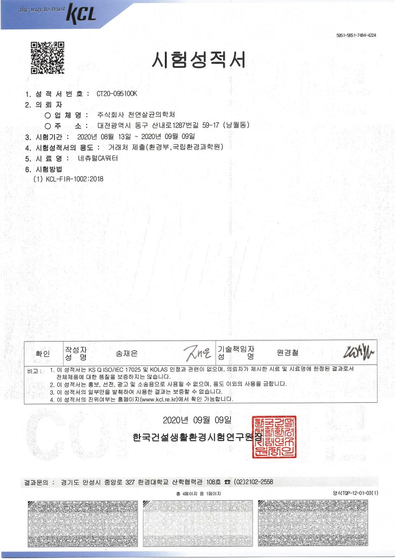 [시험성적서] MRSA균/칸디다균 Info. 글쓴이 관리자 Date 21-06-30 23:00 조회180 댓글0 Link 이전 다음 목록 Content [시험성적서] MRSA균/칸디다균 이전 다음 목록