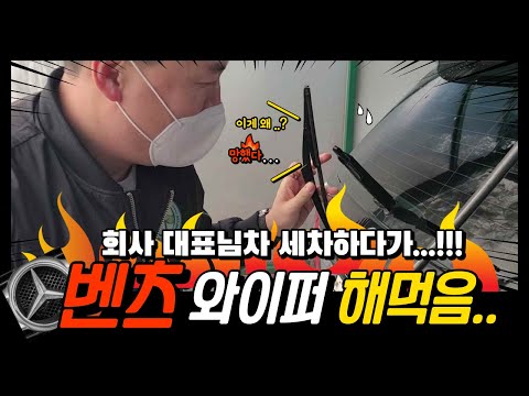 직장인 브이로그 !! 대표님차 세차하기 !! 벤츠 세차 브이로그 ! 대표님 차 벤츠 세차 중 벤츠 와이퍼 해먹어버렸습니다..!